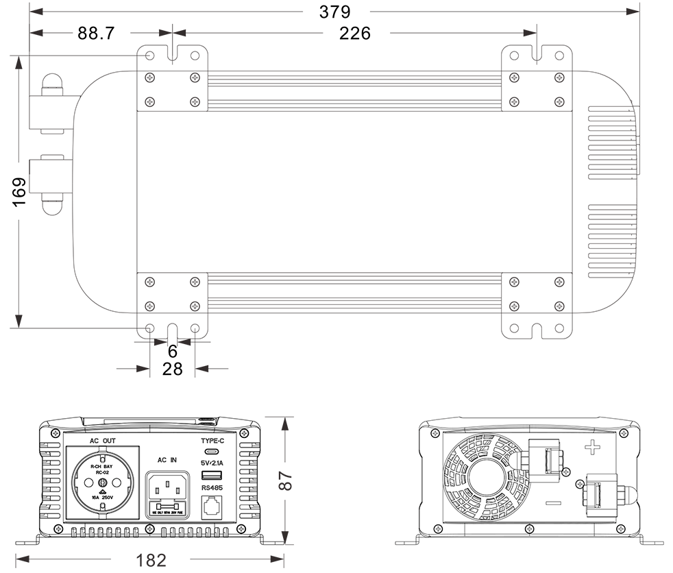 Yang lain Dimensi (w × h × d) 379 × 182 × 87mm