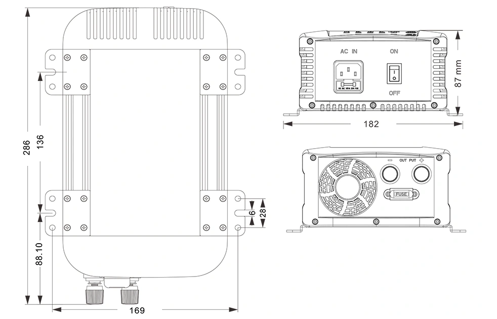 286 × 182 × 87mm