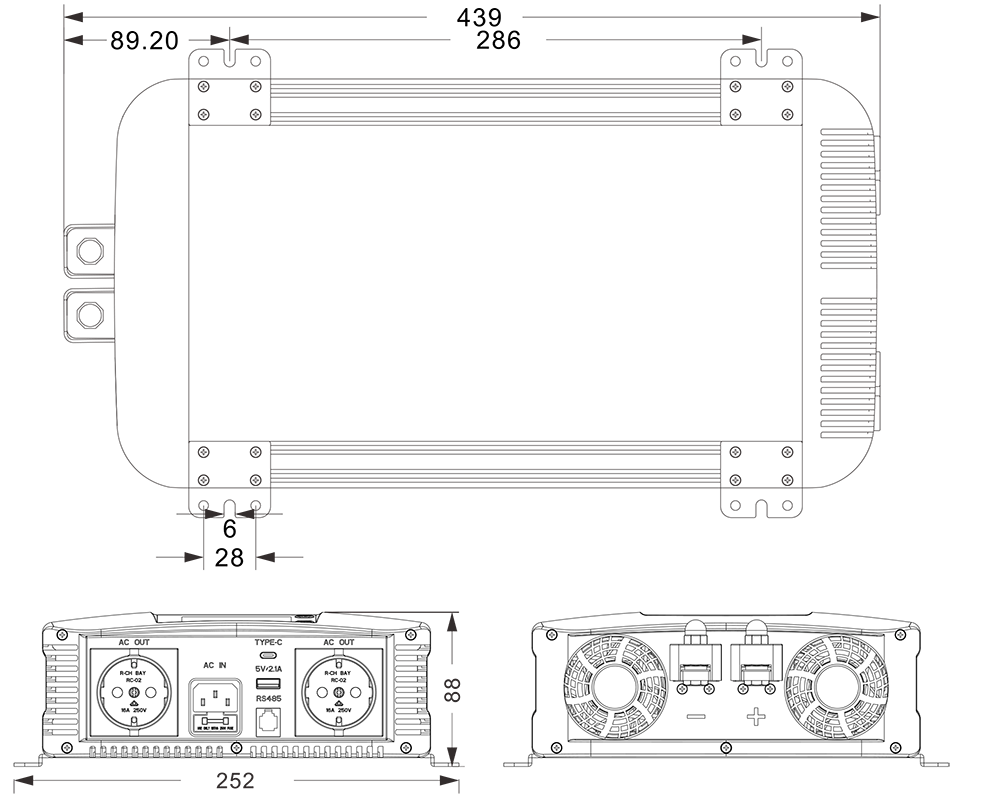 Yang lain Dimensi (w × h × d) 439 × 252 × 88mmmm